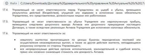 Пункт о том, что компания СептемКапитал не несет ответственности перед своим клиентом за его убытки, ущерб, финансовые потери или недополученную прибыль аферисты не забыли включить в договор. Клиент должен заранее приготовиться, что он сам же и будет виноват в своем банкротстве.