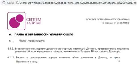 - Сбивающий с толку договор от мошенников СептемКапитал