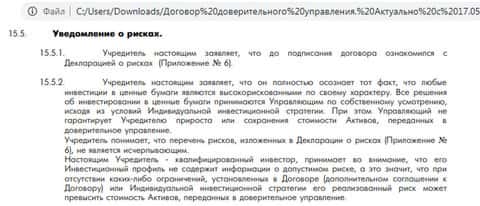 Если вдруг облапошенному лошаре придет в голову пожаловаться на шарагу СептемКапитал, ему предоставят выдержку из соглашения, где говорится, что он был предупрежден о риске инвестирования денег. Жулье заманивает вкладчиков обещаниями выгоды, на самом деле не гарантируя прибыли.