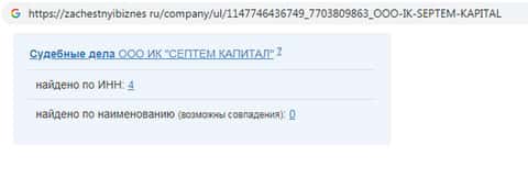 В данных о конторе SeptemCapital также находим участие в 4 судебных делах. А заявленный в учредителях Козлов Денис Валентинович, деятельность которого в качестве предпринимателя, кстати, прекращена с апреля 2019 года, поучаствовал в 9 судебных разбирательствах.