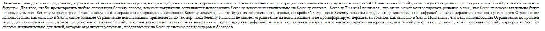 - Клиентское соглашение на сайте криптовалютного лохотрона Serenity Financial