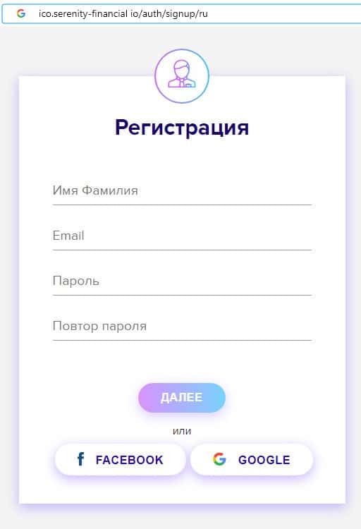На сайте скам-организации Serenity Financial есть возможность зарегистрироваться через социальные сети, при помощи чего контора и ведет сбор данных о клиенте.
