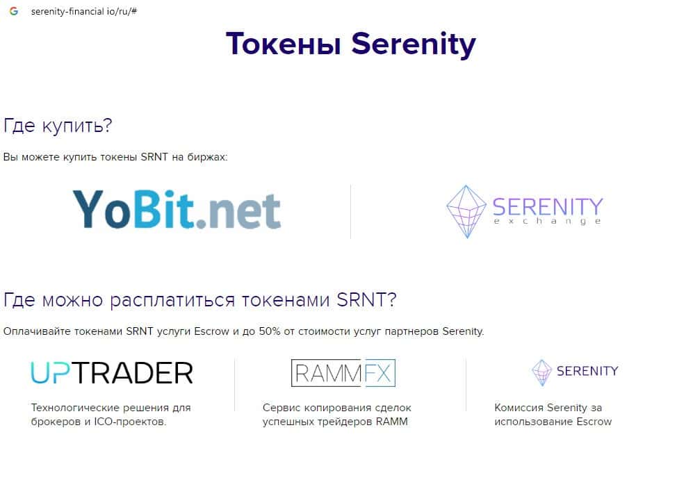 На скриншоте ниже предлагают ознакомиться с информацией о том, где предлагают покупать Токены мошенники Serenity Financial.