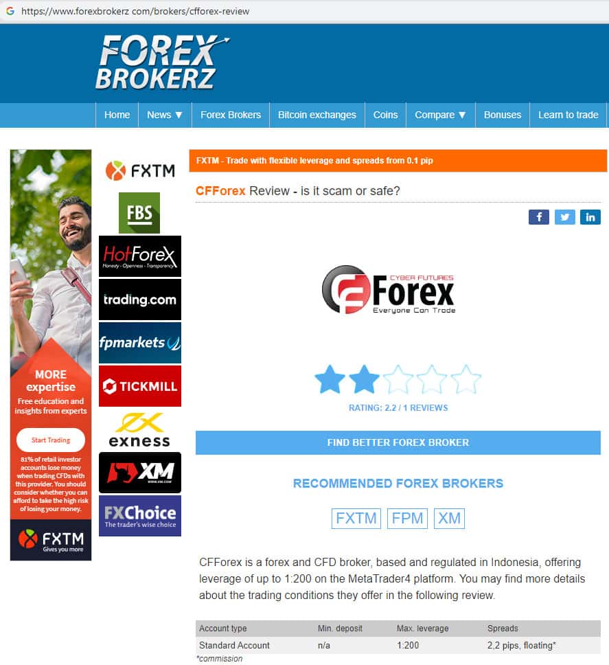 - Обзор условий трейдинга брокерской конторы CF Forex на портале forexbrokerz com