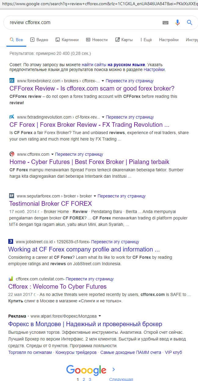 Подозрительная тишина в интернет о пятилетней деятельности брокерской конторы CF Forex