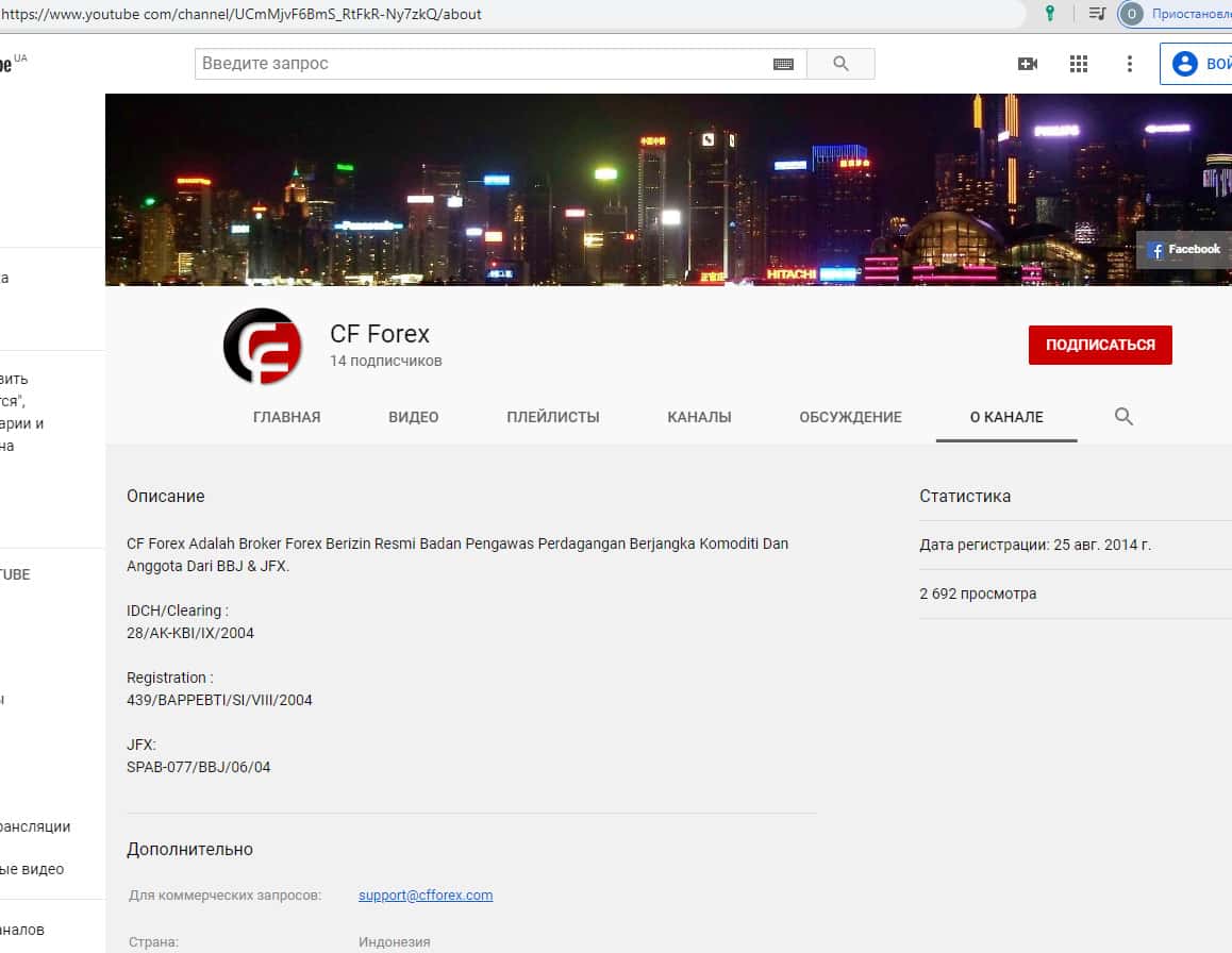 - Продвижение брокерской конторы CF Forex с помощью YouTube