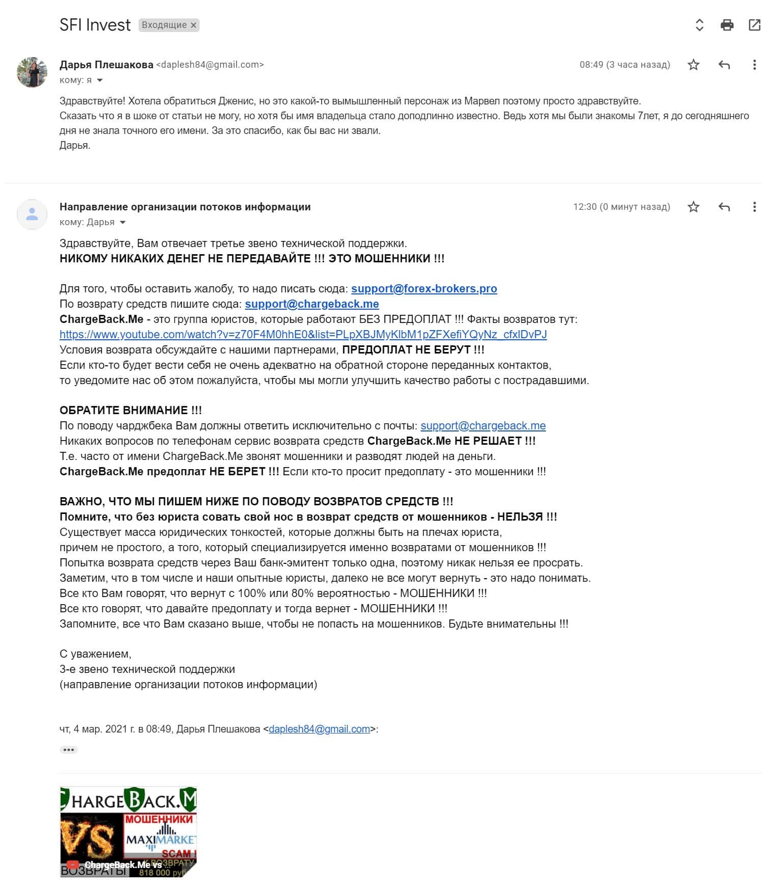 В том случае если шулера из СФИ Инвест Вас обманули, то тогда обязательно расскажите об этом случае нам. Сообщите адрес электронной почты в форме для обратной связи ниже, с Вами свяжутся.
