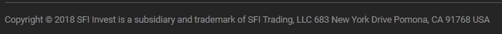 В футере у жуликов SFI Invest прописано, что они являются торговой маркой и управляются конторой SFI Trading, LLC и указан адрес в Калифорнии. Никакой информации о лицензии или регистрации мошенники не предоставляют вообще, даже не вполне понятно, с каким юридическим лицом будет иметь дело инвестор, решившийся подарить деньги аферистам.