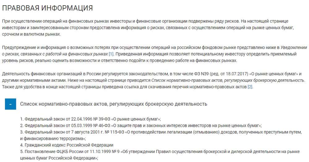 С клиентским соглашением лохотронщики СФИ Инвест подкачали - то есть, его нет вообще. На сайте есть какие-то псевдо писульки, в основном касающиеся рисков. В начале документа жулики решили блеснуть знанием законов РФ, которые регулируют деятельность брокерских контор, и вывалили их списком - зачем, непонятно, они же "не брокеры".