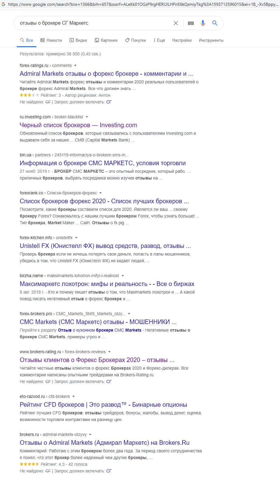 Отсутствующие отзывы в сети интернет о деятельности аферной брокерской организации СГ Маркетс