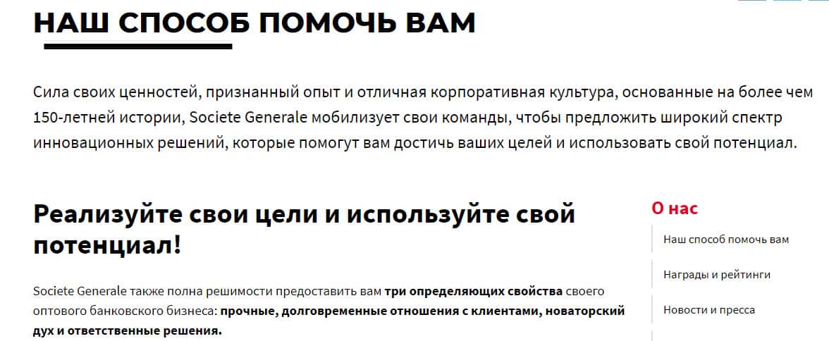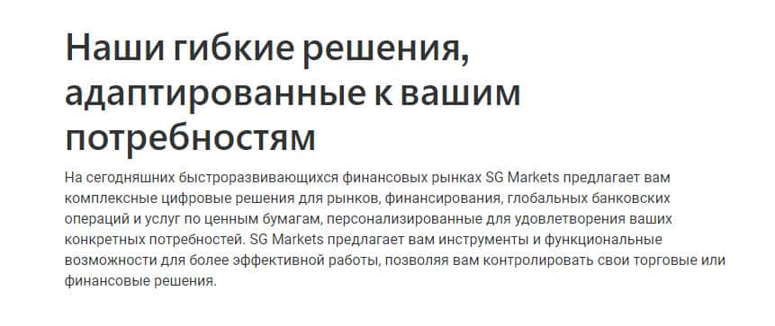 Далее мы можем перейти в раздел аферного портала "Наш способ помочь Вам", в котором злодеи из шарашкиной конторы SGMarkets убеждают форекс игроков, что они могут предоставить три свойства своего оптового банковского бизнеса: новаторский дух, ответственные решения и прочные отношения с клиентами. По факту, сплошной обман.