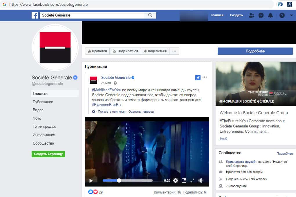 Аферисты из воровской компании СГ Маркетс пытаются использовать различные интернет-ресурсы, чтобы развести пользователей на деньги. Одним из таких ресурсов они используют социальную сеть Фейсбук, количество подписчиков в которой составляет 857698 человек. Мошенники не пожалели денег, заплатив уйму бабла ботам. Адрес facebook com/societegenerale