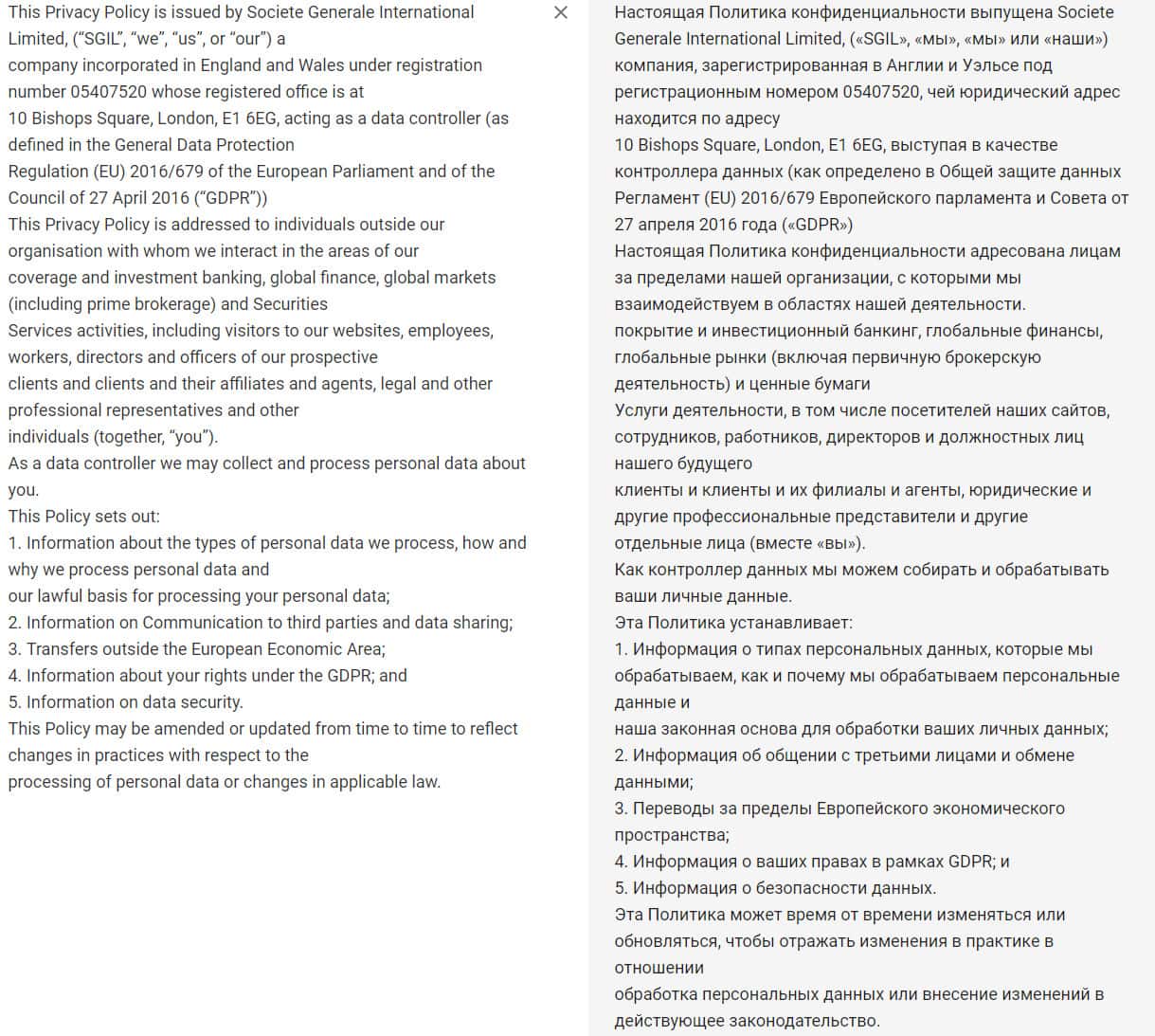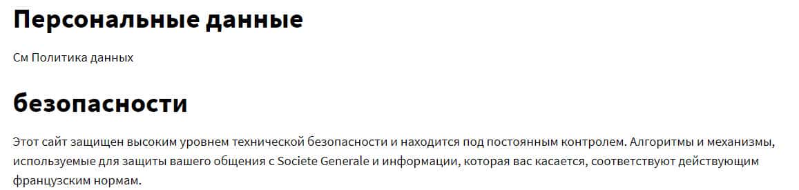 В последнем разделе договора "Персональные данные безопасности" говорится о том, что информация, предоставляемая клиентам форекс кухни СГ Маркетс, соответствует действующим французским нормам. Но это все лишь создание благополучной видимости, фактически, замыливание глаз происходит.