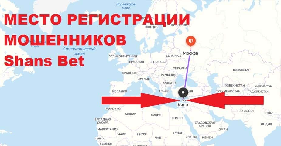 Мошенническая организация Shans Bet указала, что зарегистрирована на Кипре. Данный оффшор является центром мошеннической деятельности, так как все жулики регистрируют свои лохотроны именно здесь.