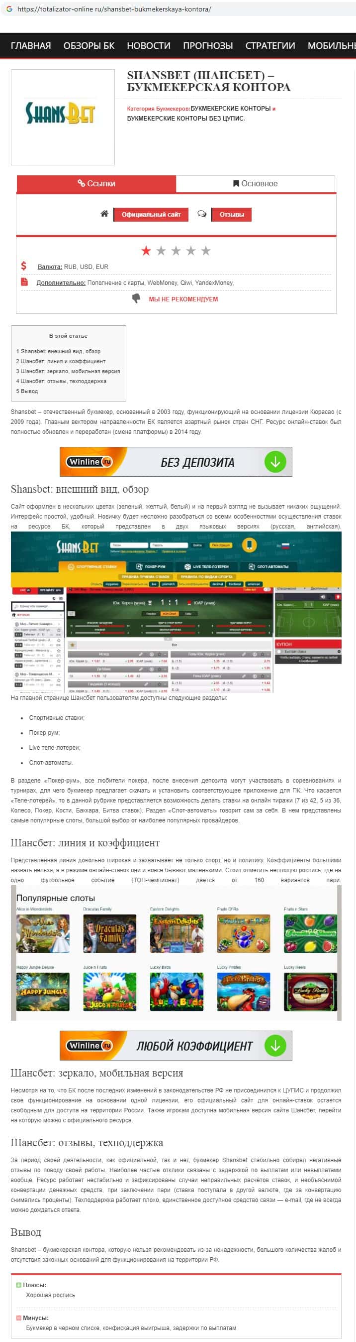 totalizator-online ru - сайт с информацией о аферистах Shans Bet