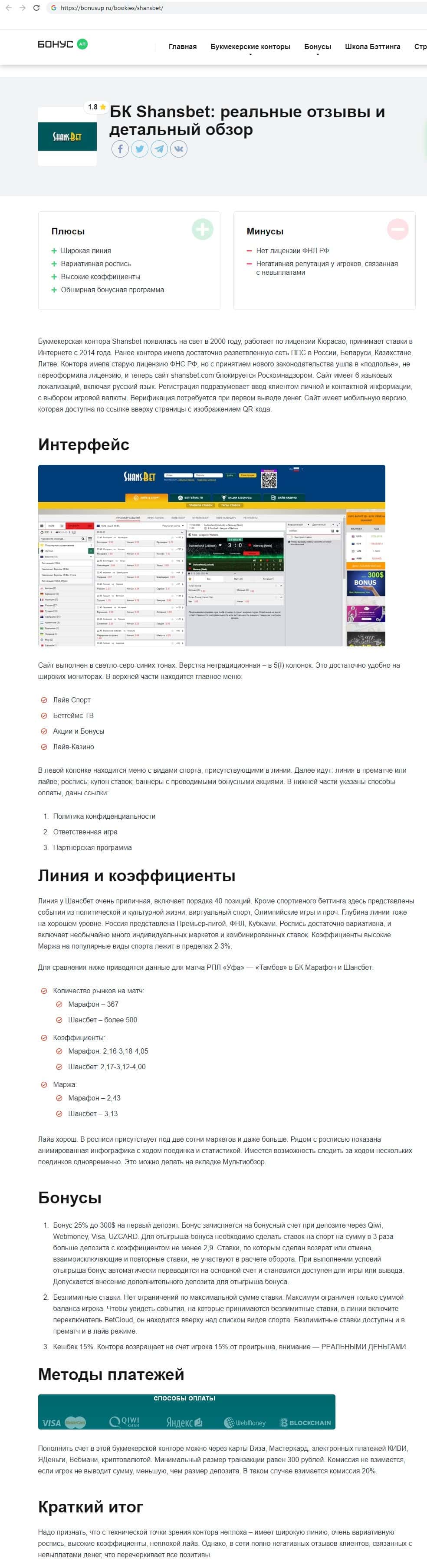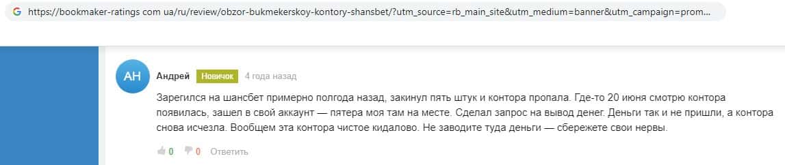Отзывы интернет - пользователей о фирме разводил Shans Bet