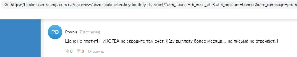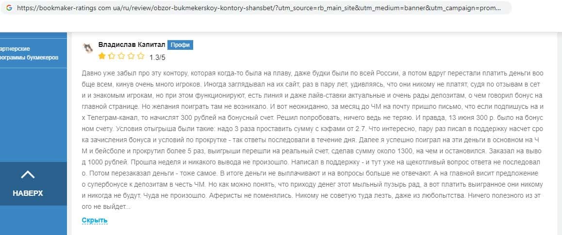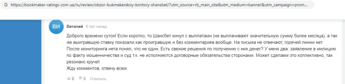 - Отзывы интернет - пользователей о фирме разводил Shans Bet