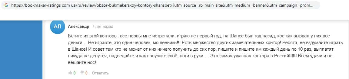 Мнение интернет ресурсов о конторе махинаторов Шанс Бет
