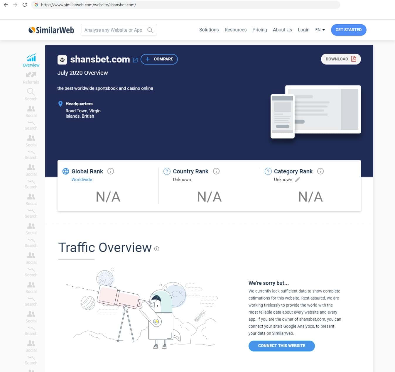 Через интернет ресурс similarweb com мы хотели узнать информацию о трафике главного сайта аферистов Шанс Бет, но оказалось, что международный сервис не знает о существовании данной организации.