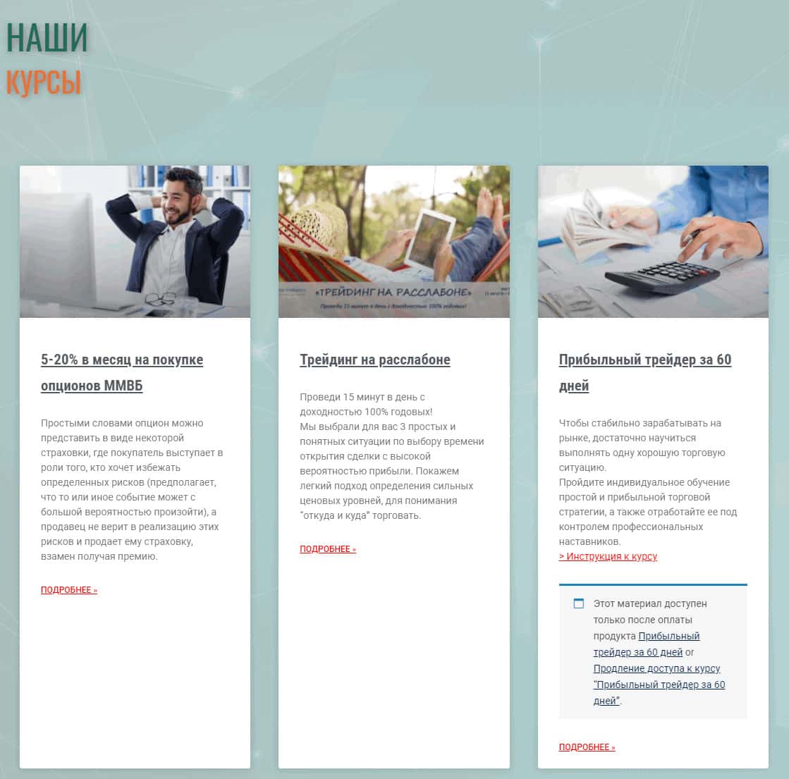 В отдельном разделе, где находятся все учебные курсы конторы мошенников ShilinTrade Com, мы можем увидеть истинную жадность данных кидал. По факту мошенники не предлагают клиентам ничего кроме рассказов про успешный успех. Что удивительно, кидалы за эти пустяковые рассказы просят немалые деньги.