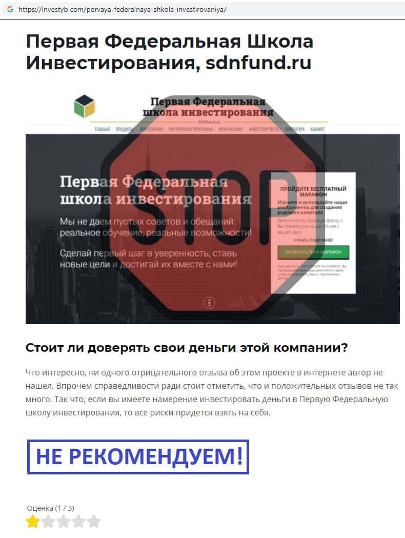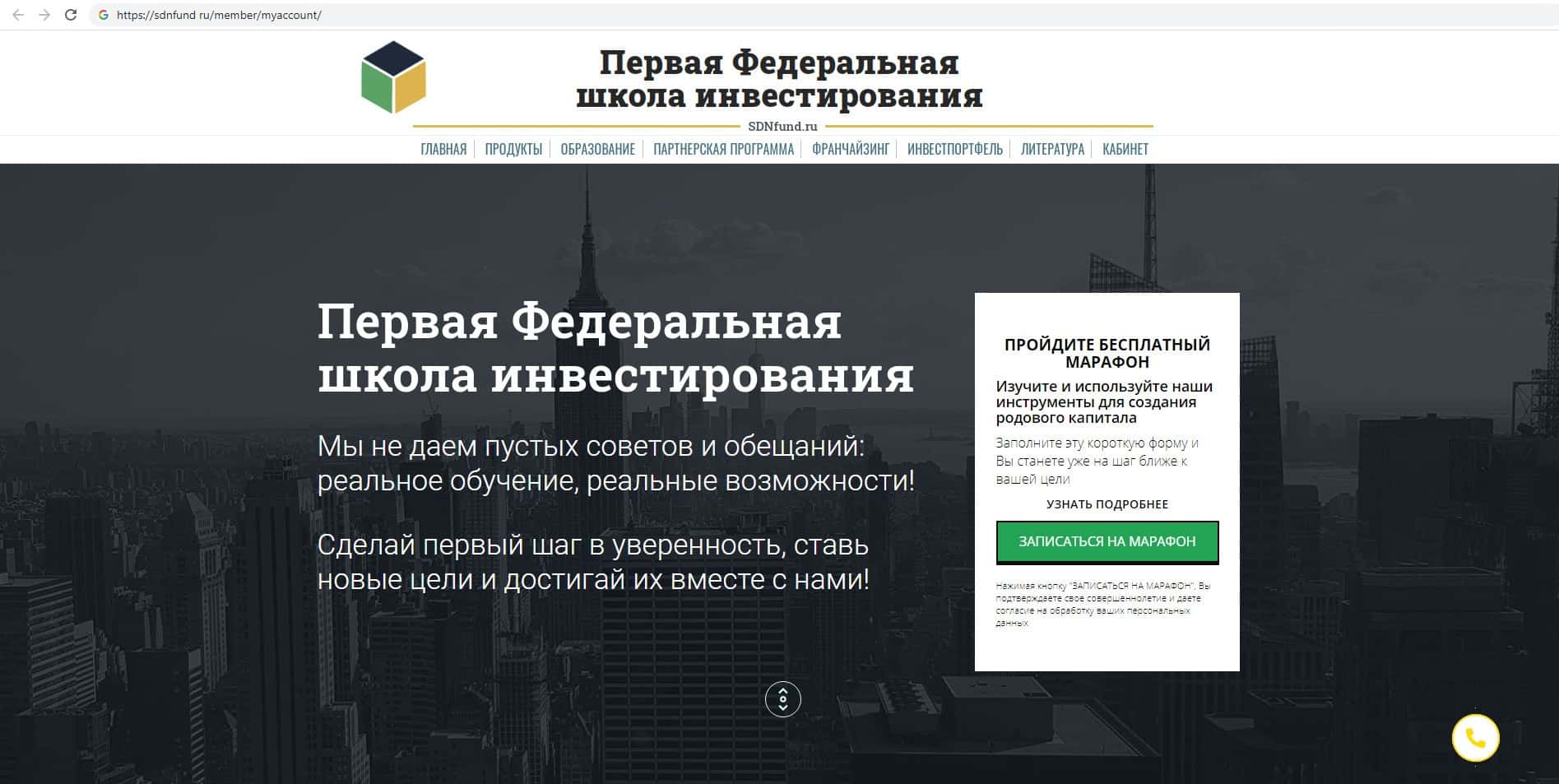 SDNFund Ru - официальный сайт конторы Первая Федеральная Школа Инвестирования