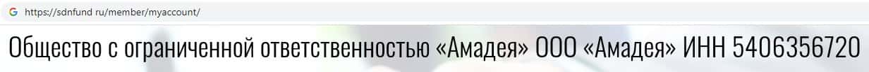 Юридическое лицо ООО «Амадея» владеет мошенническим сервисом sdnfund ru, компании Первая Федеральная школа инвестирования, главная цель которого, отъем денег у людей.