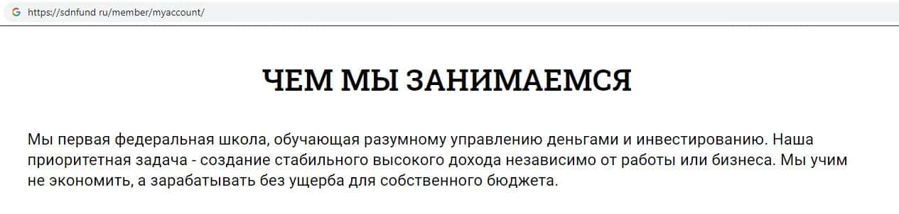 Мошенники SDNFund предлагают на их дырявом сайте обучаться инвестированию, управлению денежными средствами.