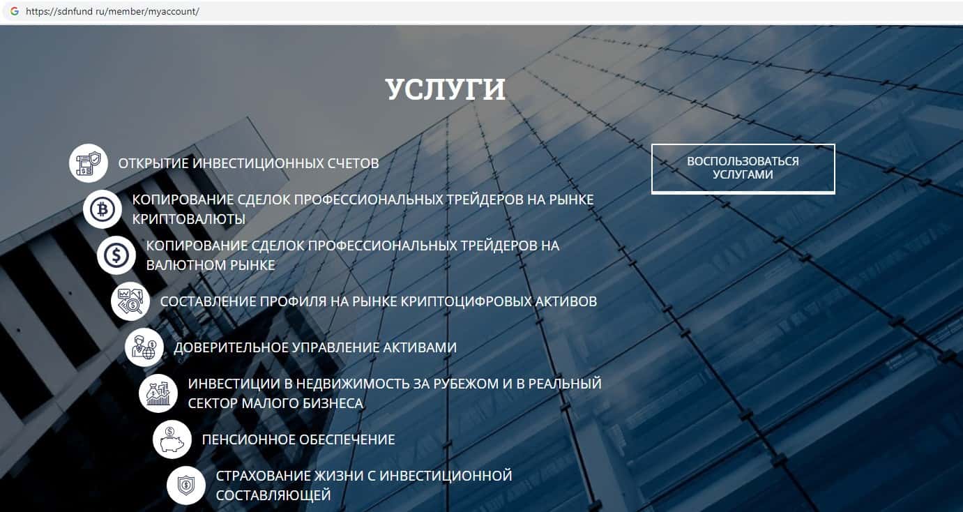 sdnfund ru - официальный интернет-ресурс лохотрона SDNFund
