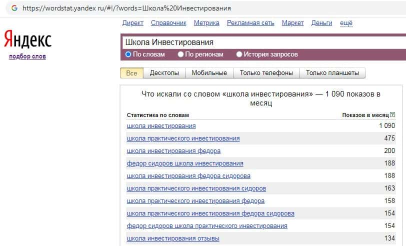 Данный интернет-лохотрон под названием "Школа Инвестирования" на wordstat yandex ru вероятнее всего пользуется популярностью из-за схожести названия.