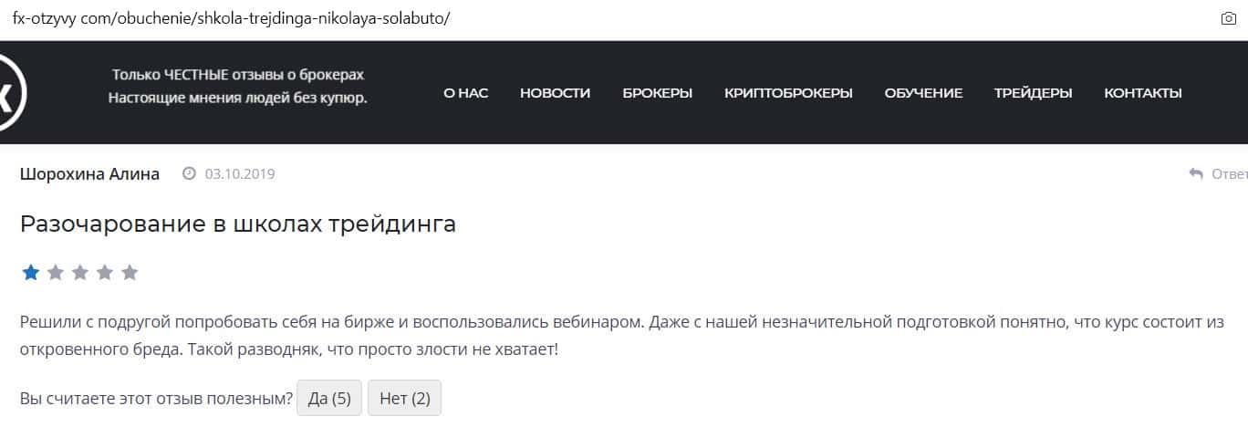 Люди считают школу трейдинга Школа Николая Солабуто лохотроном