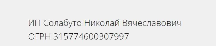 Юридическим лицом организации Solabuto-School Ru является ИП Солабуто Николай Вячеславович. Эта информация имеется внизу главной страницы сайта.
