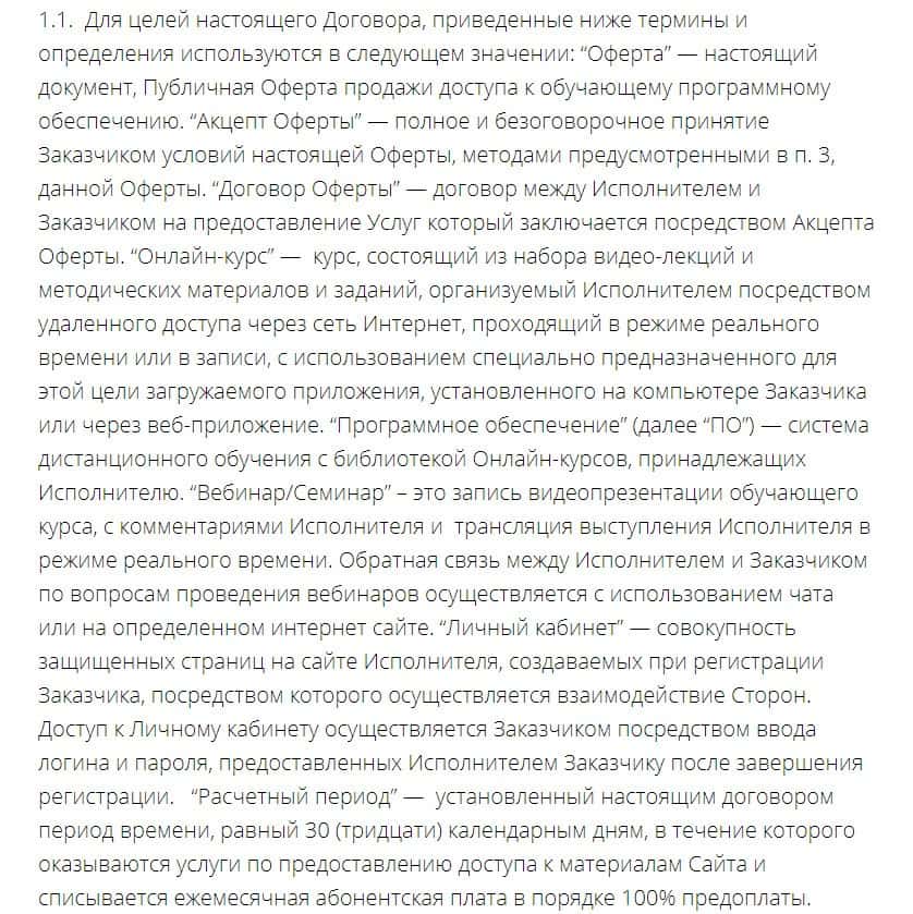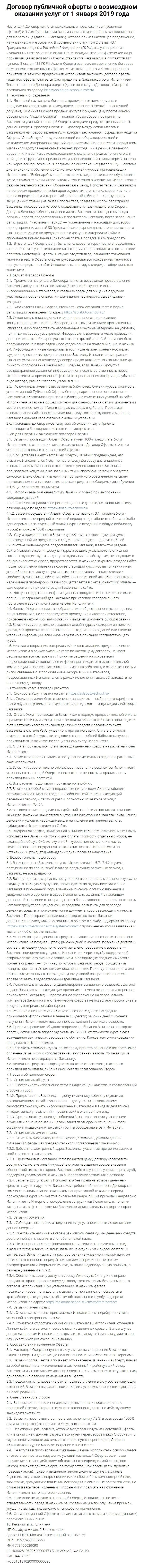 Ниже вы можете ознакомиться с полным текстом договора компании Школа Николая Солабуто.