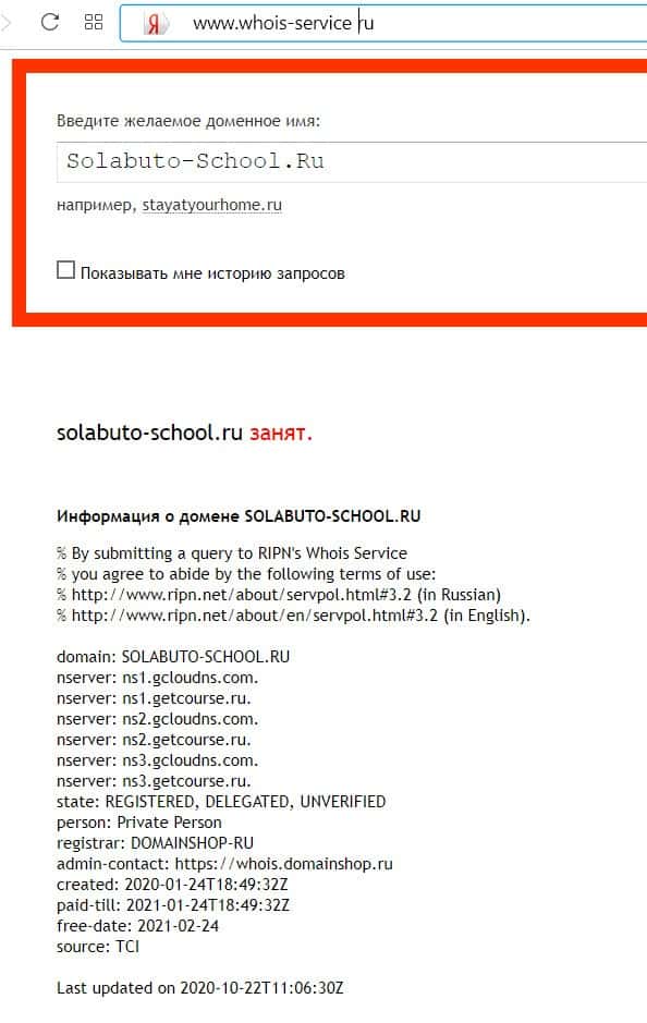 - Кому принадлежит доменное имя сайта Solabuto-School Ru?