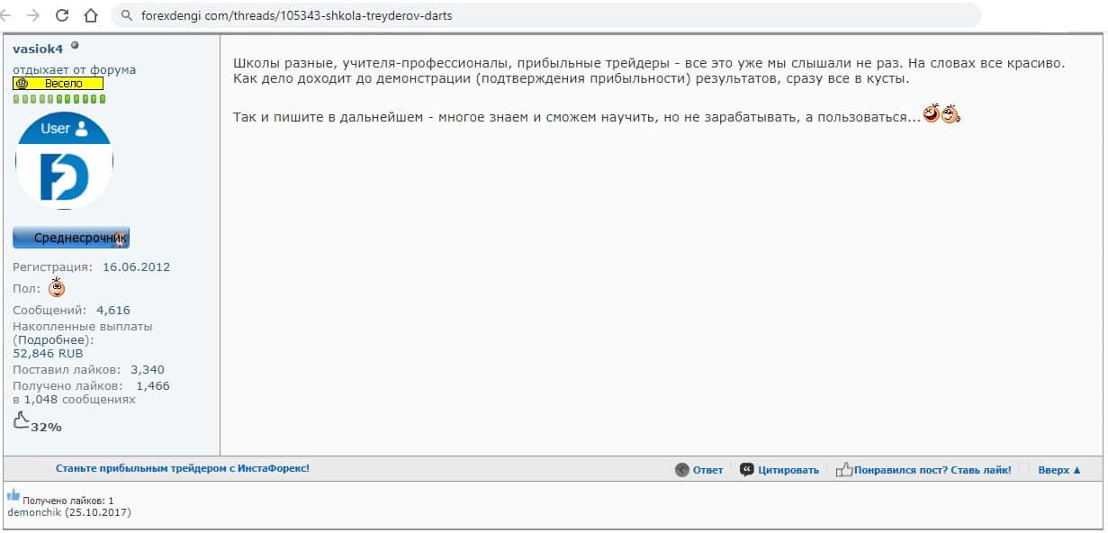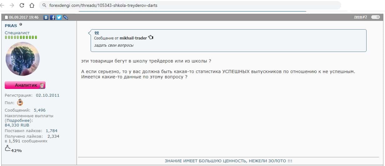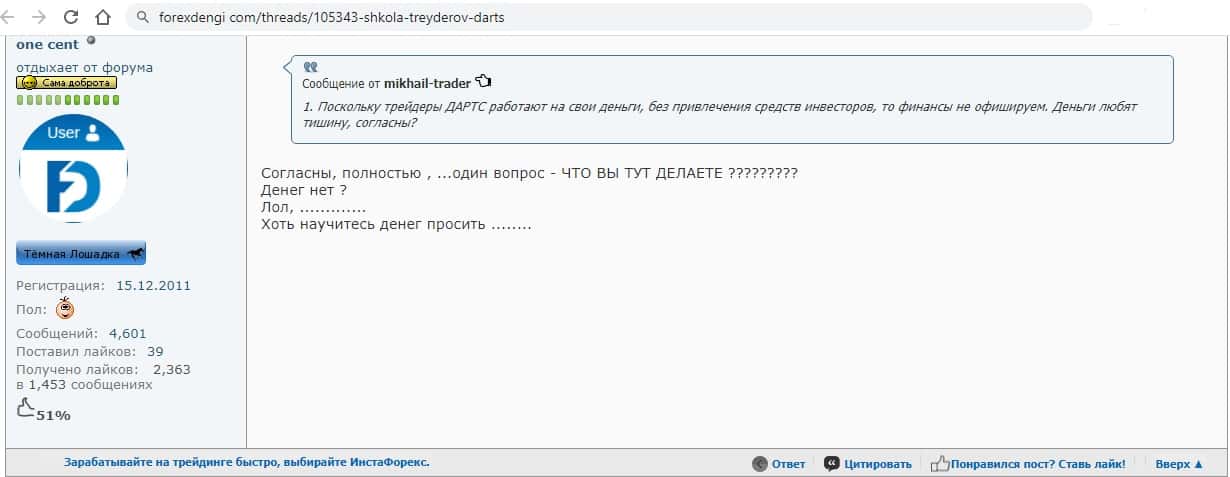 - Второй пользователь намекает на то, что в Школа трейдеров ДАРТС не научат вас ничему новому