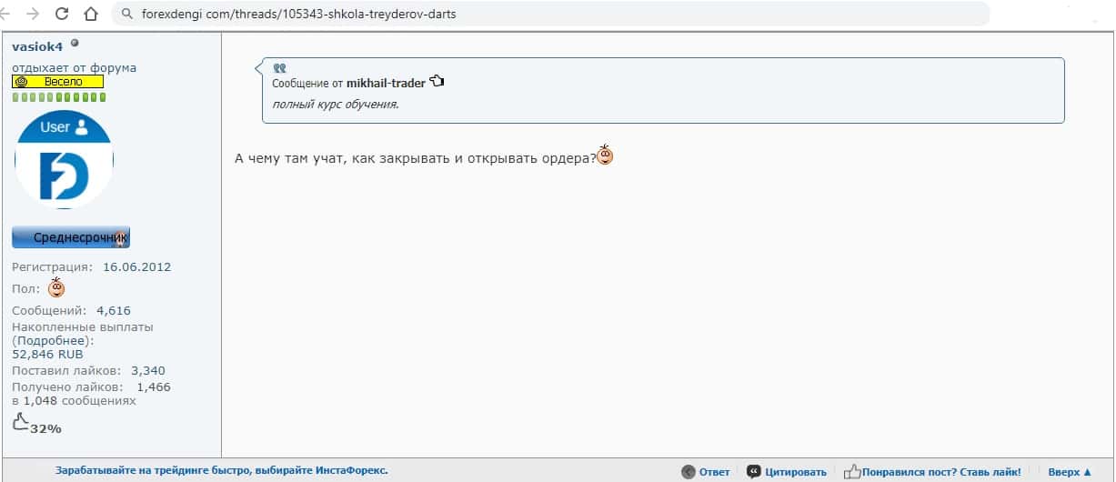 Люди интересуются, что если у Школа трейдеров ДАРТС так все отлично, то почему они ищут клиентов на форумах, а не заказывают нормальную рекламу?