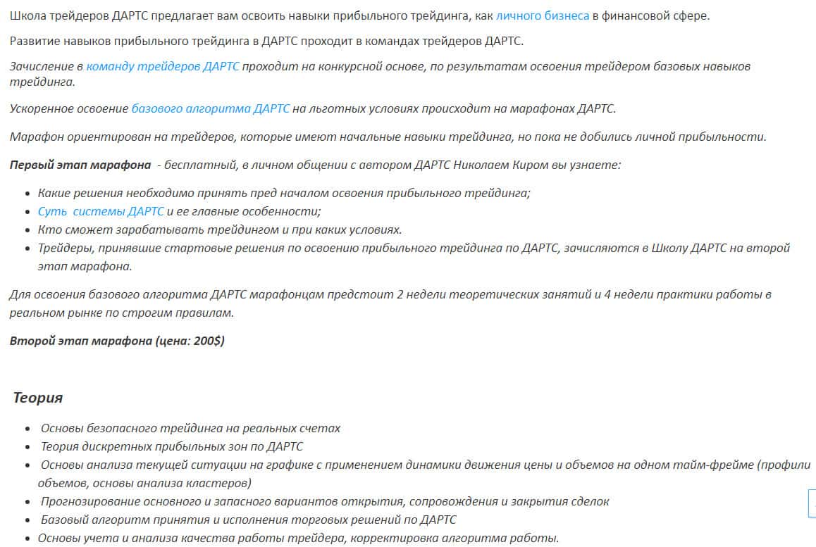Ну и конечно же, куда тут без марафона, который призван "помочь" вам закрепить результаты. Школа трейдеров ДАРТС не отстают от моды и тоже дают такие марафоны. Но вот только они с вас просто еще дополнительно разведут на деньги и все. Лучше держаться как можно дальше от таких марафонов и таких контор.