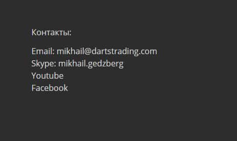 Связаться с мошенниками DartsTrading вы можете одним из следующих способов: