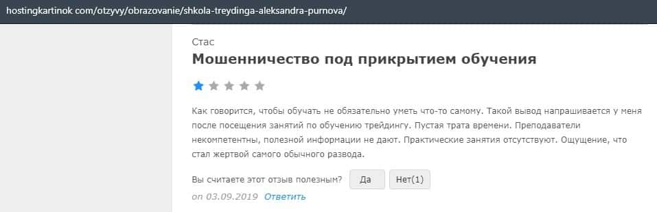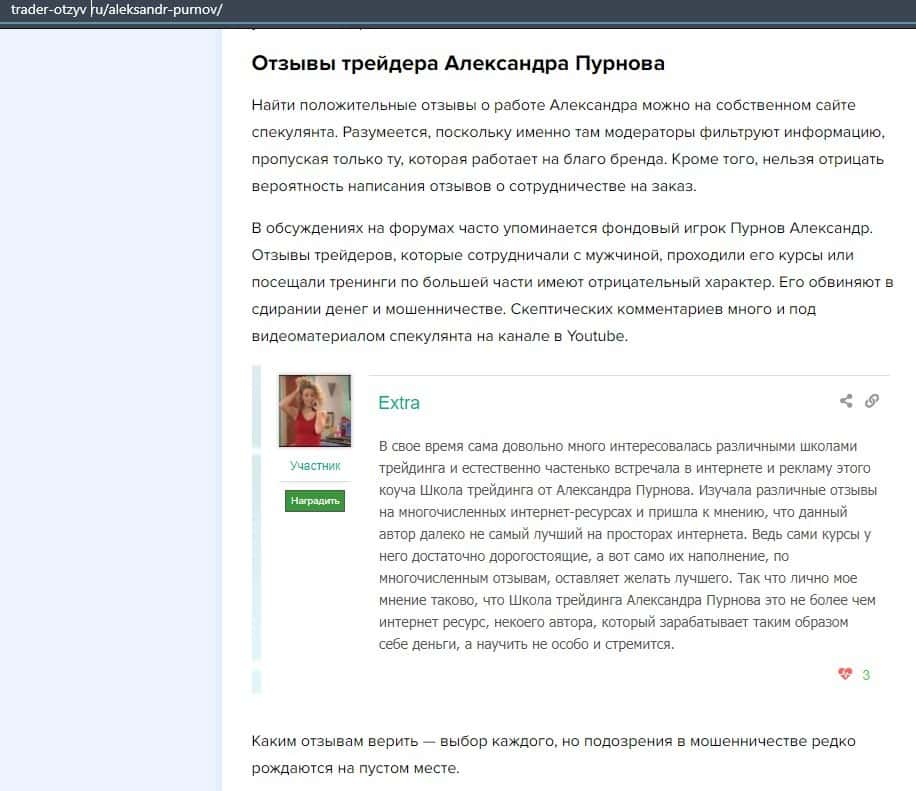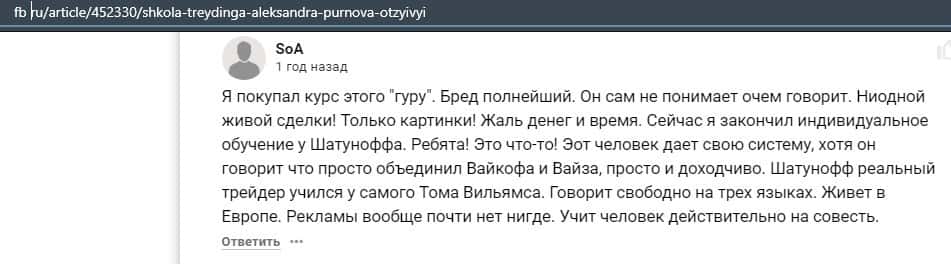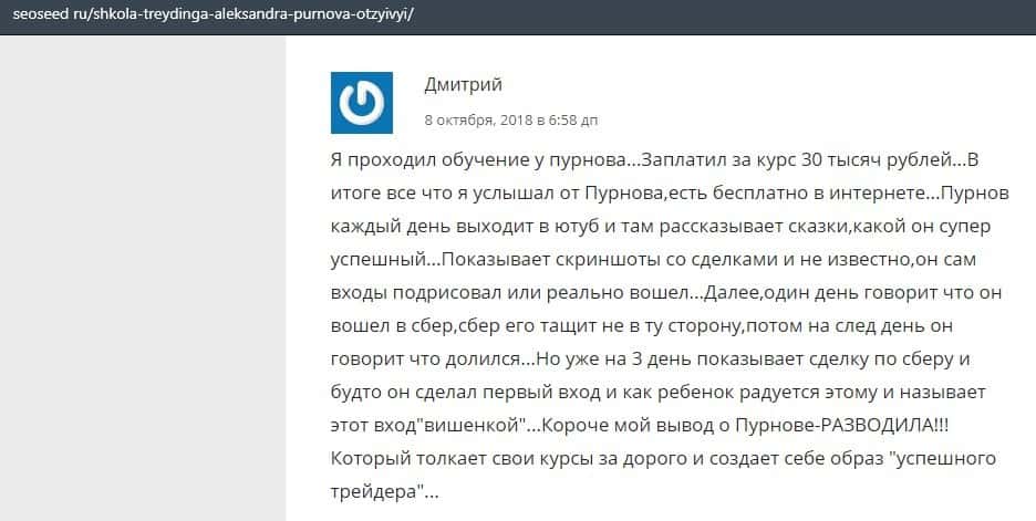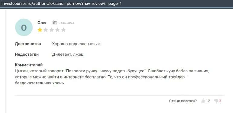 По мнению автора еще одной статьи, если вы хотите занимать трейдингом, то в первую очередь не нужно покупать курсы в недошколах, таких как AlexanderPurnov.