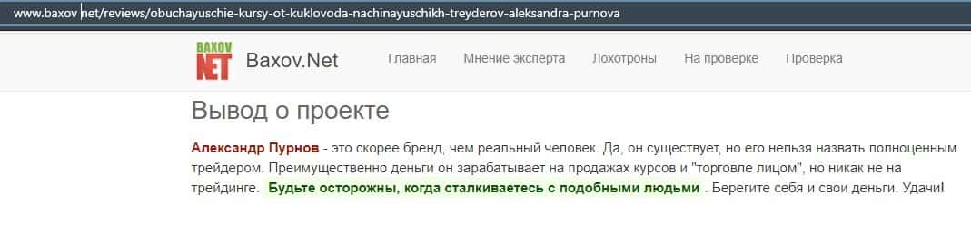 Автор следующей статьи напрямую говорит, что контора AlexanderPurnov это бред и вестись на него не нужно. Об этом скажут сами за себя правдивые отзывы в интернете.