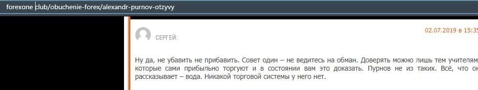 Еще один пользователь сети утверждает, что в форекс-школе AlexanderPurnov работают лжецы. Они срубливают бабло, втирая при этом лохам псевдо-знания.