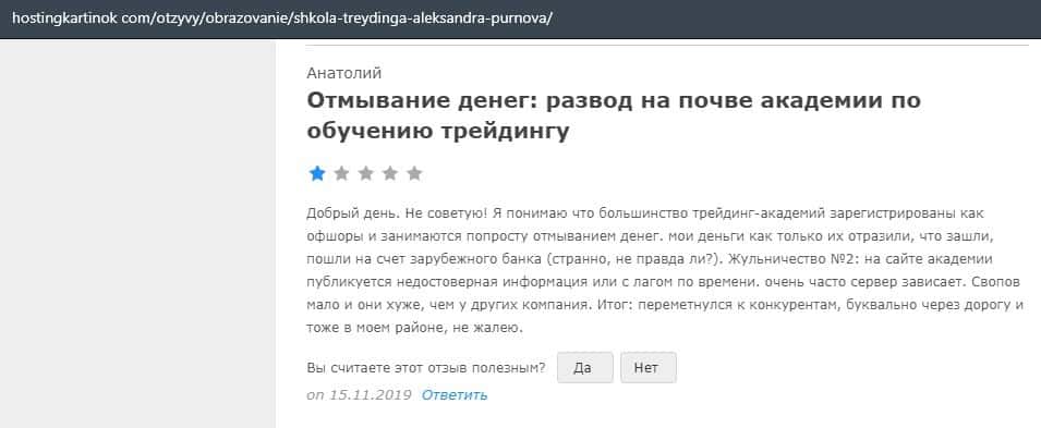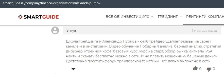 Еще один клиент считает, что курсы от Школа трейдинга Александра Пурнова придумал очередной инфоцыган, чтобы не только выманивать средства клиентов, но и отмывать их.