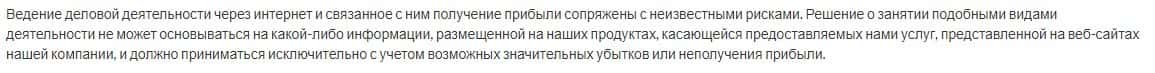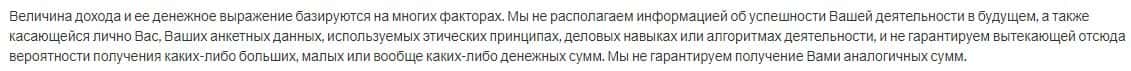 Также лохотрон Школа трейдинга Александра Пурнова подтверждает, что он не дает никаких гарантий за результаты деятельности в особенности получения дохода.