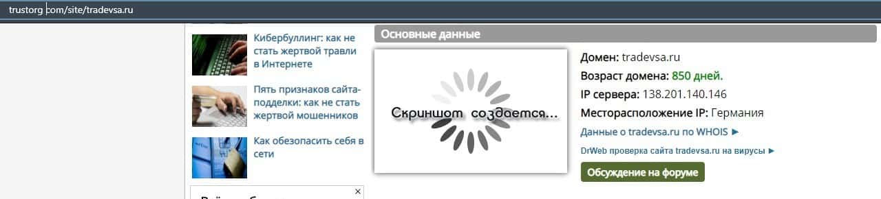 С поиском сайта "tradevsa.ru" по бренду с точкой в домене. Мошенники не такие уж и популярны в Гугл как кажется на первый взгляд.