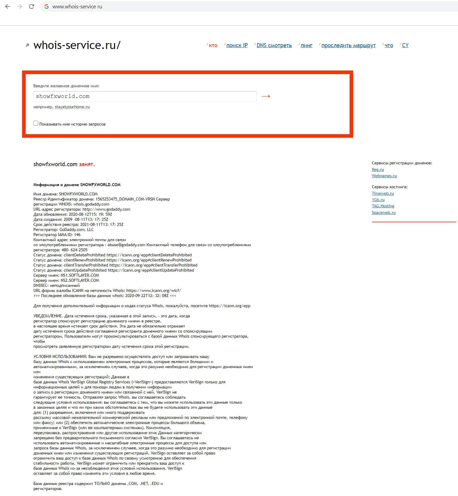 Кому принадлежит домен компании разводил ShowFxWorld?