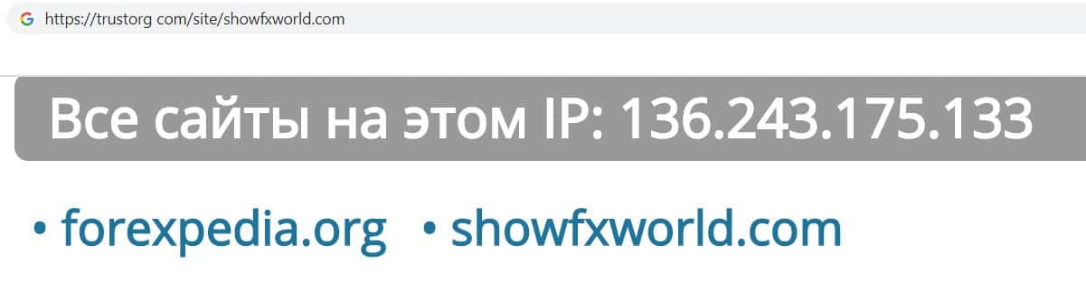 - Сайт компании Шоу ФХ Ворлд находится на одном айпи с другим интернет ресурсом