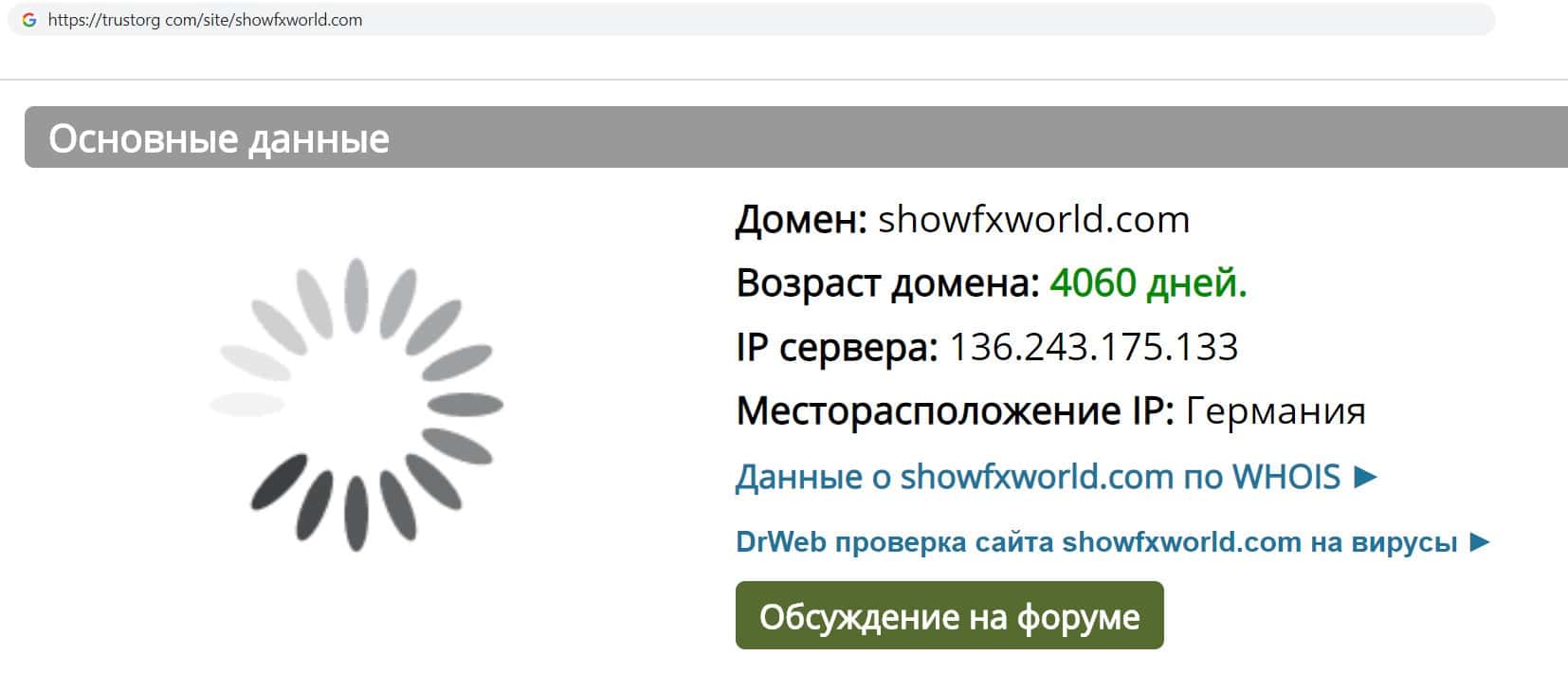 Информация о главном интернет ресурсе компании жуликов showfxworld com