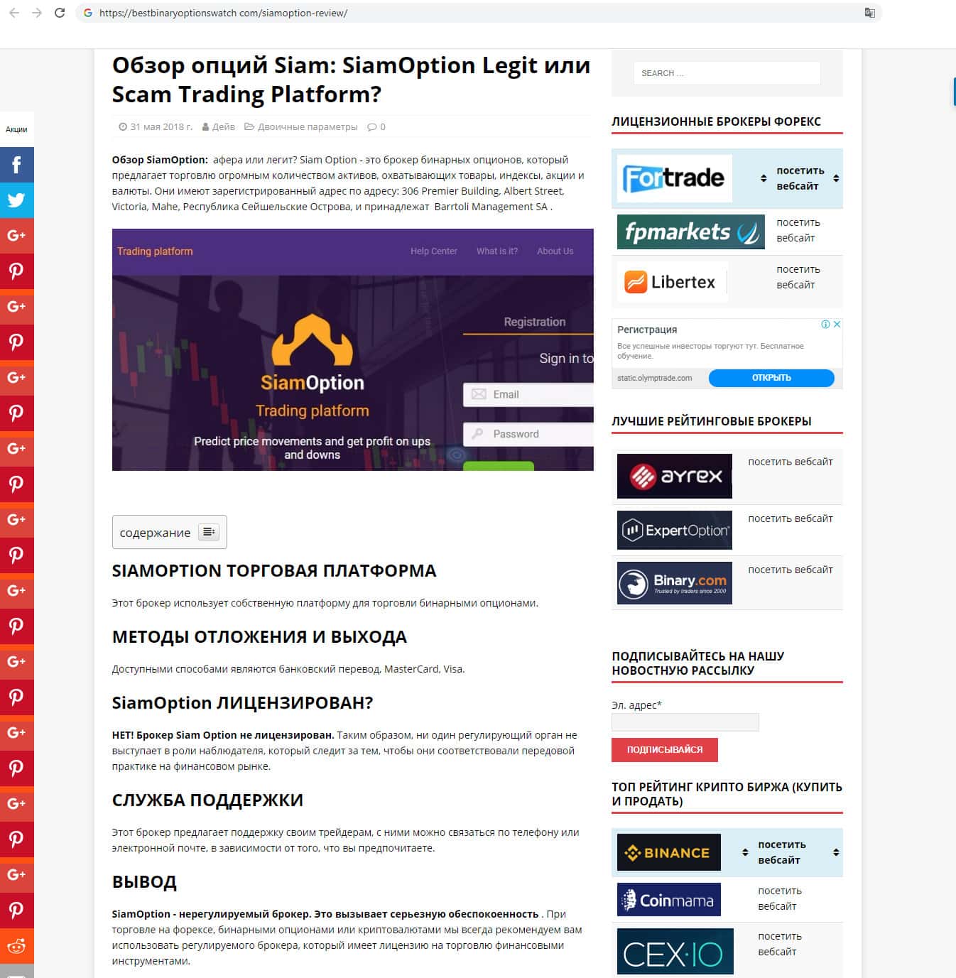 Мнение других интернет ресурсов о компании аферистов Siam Option
