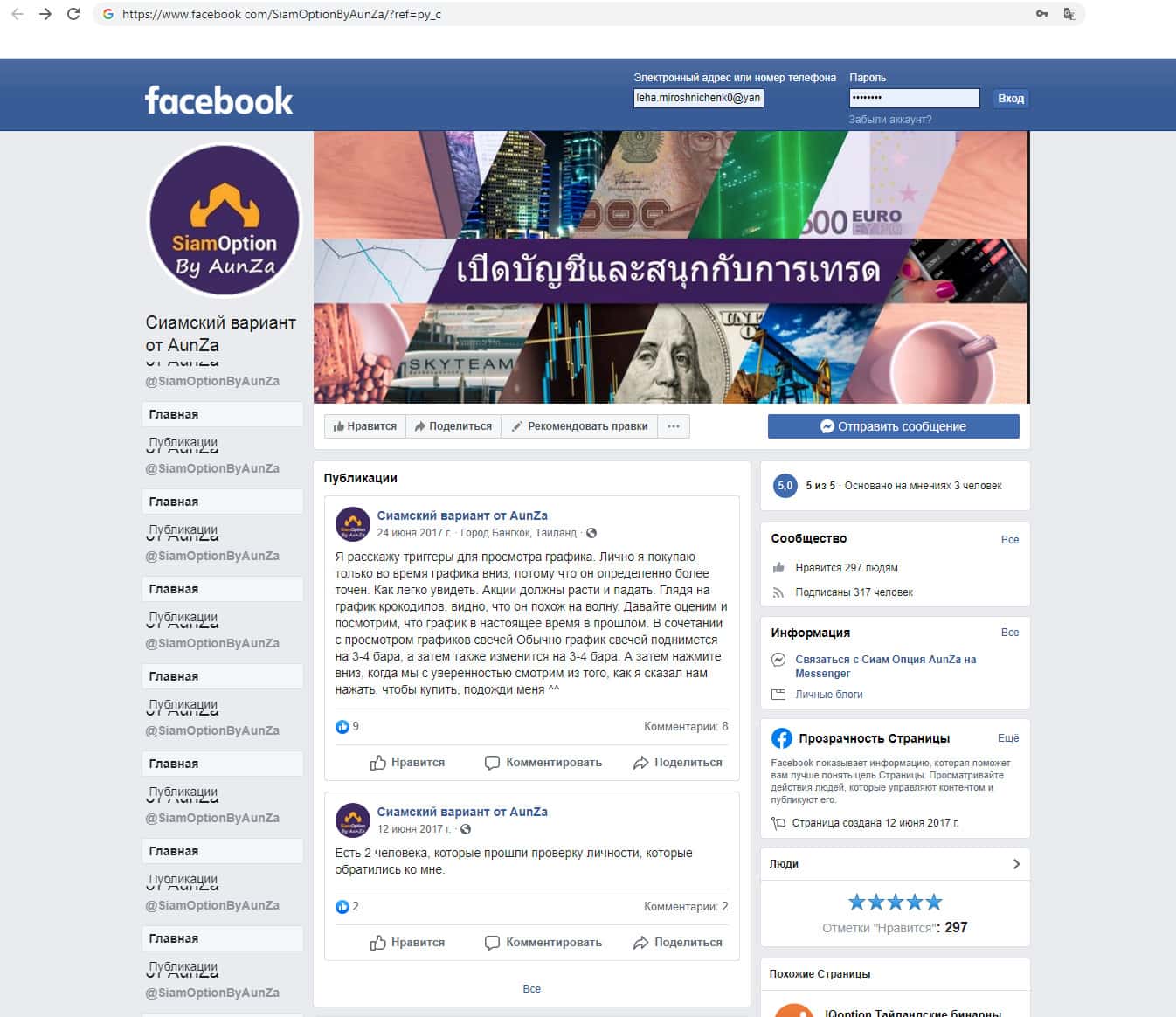 - Сотрудничество мошенников Siam Option с социальными сетями