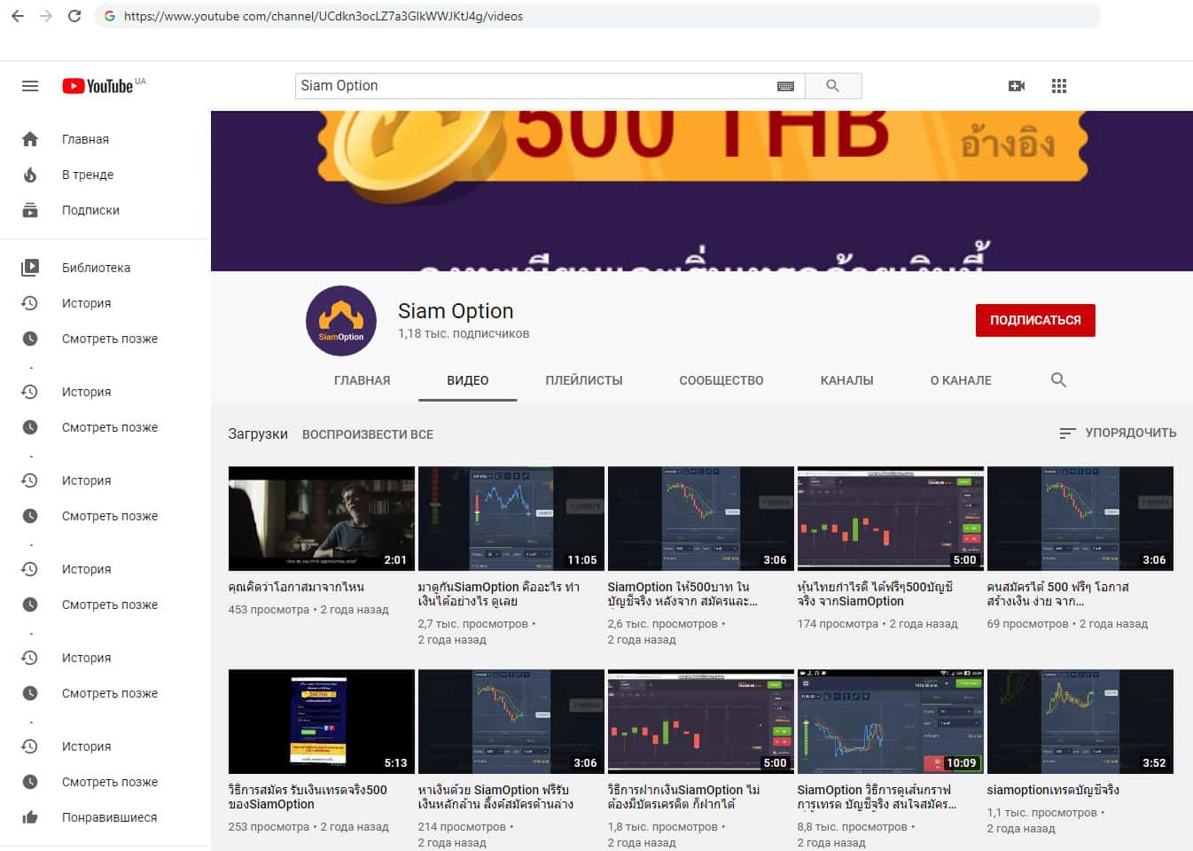 Так же нам удалось обнаружить канал на всемирно известном видеохостинге YouTube, который принадлежит махинаторам Сиам Опцион. Там они набрали более 1000 подписчиков, и выкладывают видео с торговлей, которая построена, что бы показать клиентам, что якобы можно заработать.