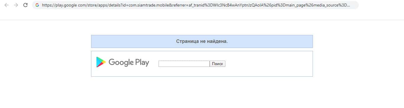 Лохотрон Сиам Опцион не остановился на этом, и создал приложение, ну точнее не создал, а просто сделал вид. На сайте указанно, что у компании есть собственное приложение для мобильных устройств, и указанны ссылки на него, но пройдя по ним, клиент увидит, что приложений никаких нет, а это просто ложная информация.